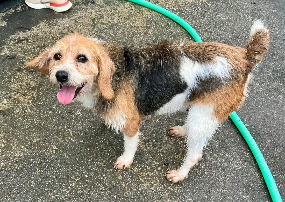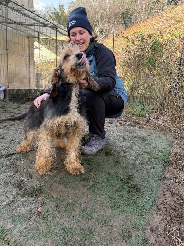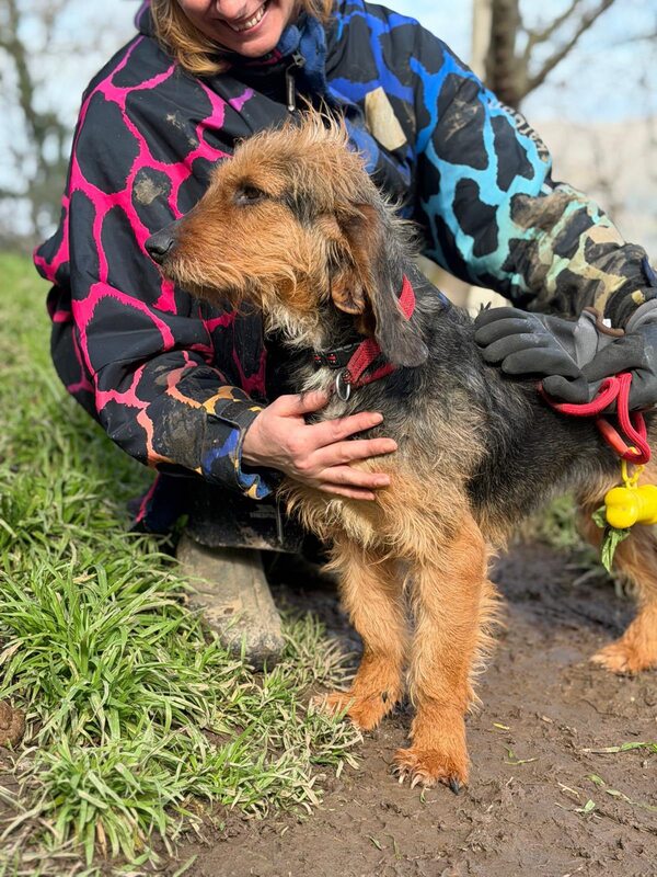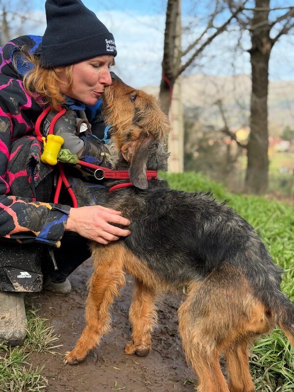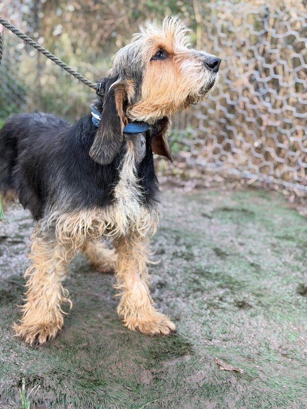 This happy but mega scared boy is Clint. He's one of our hoarding dogs rescued many months ago. He's now quite ready to be adopted.