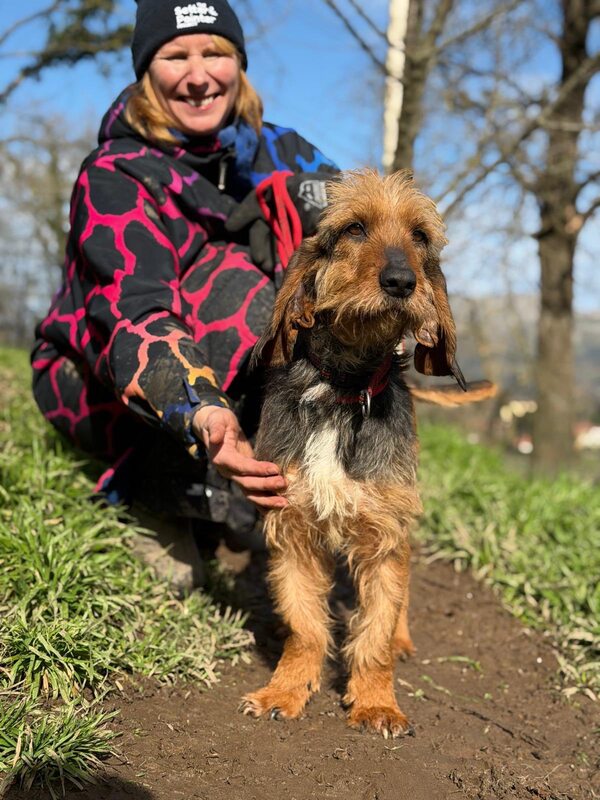 Polka is super sociable both with people and with other doggies. She is balanced and respectful. She likes human contact.