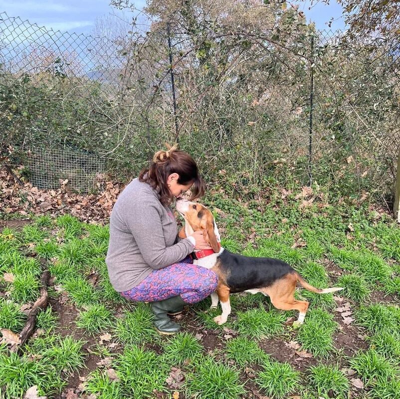 Cora is good with other dogs but she needs to be the boss. She's super sweet and sociable with people, she needs a bit of work on the lead, she's strong.