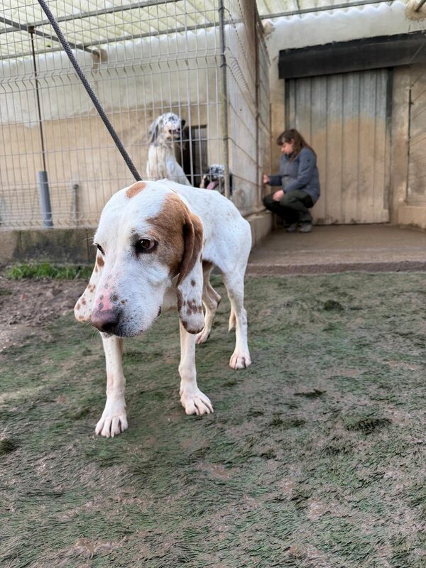 Buddy is not good at hunting so he was brought to a shelter in the North of Spain. Buddy is scared of people but he learns fast. He has improved a lot since he arrived.